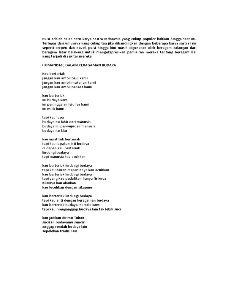 Contoh Puisi Manusia Dan Keberagaman Budaya Brainly Co Id