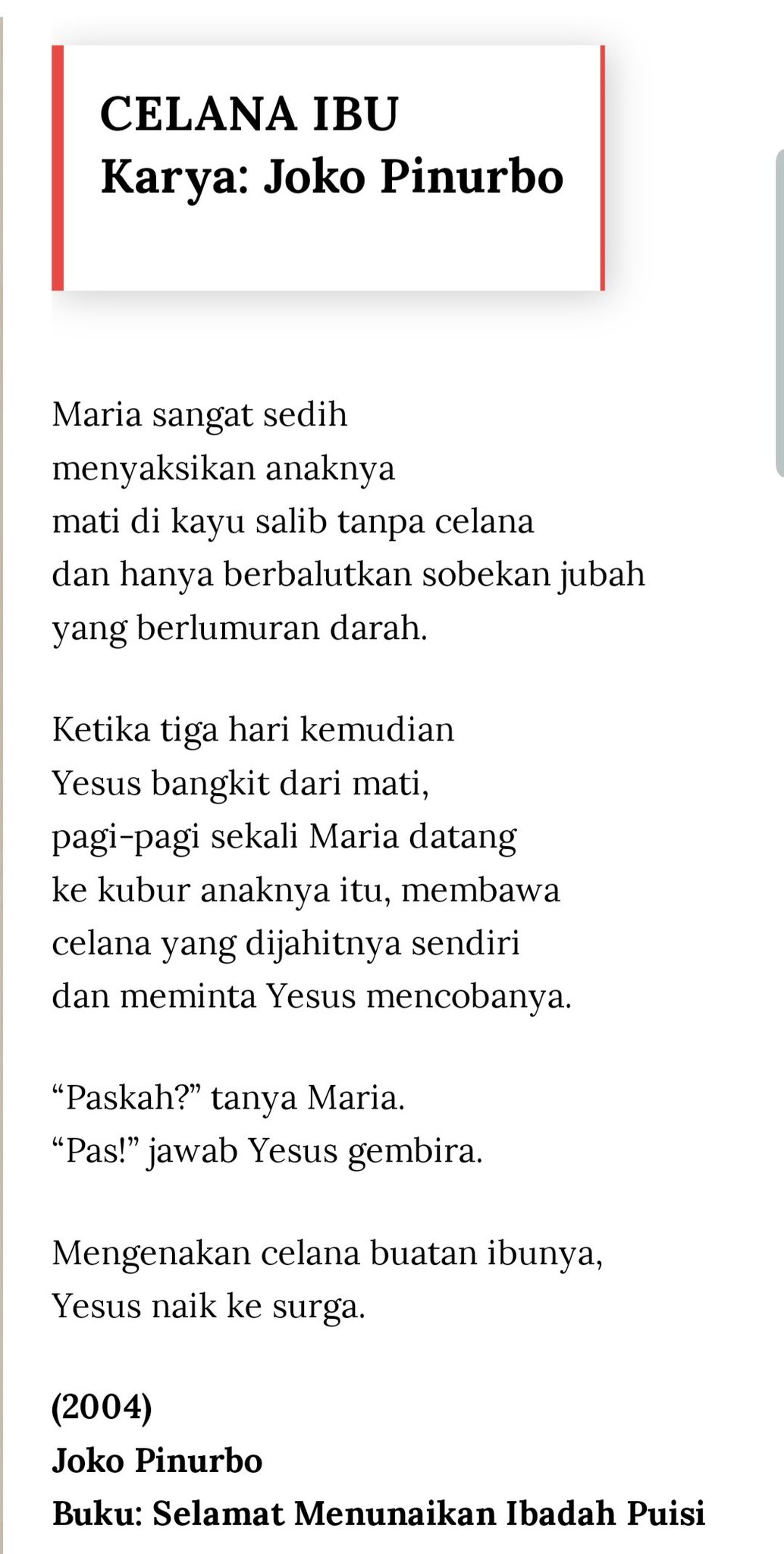Akhmad Sahal On Twitter 4 Terakhir Puisi Joko Pinurbo Ttg Paskah Celana Ibu