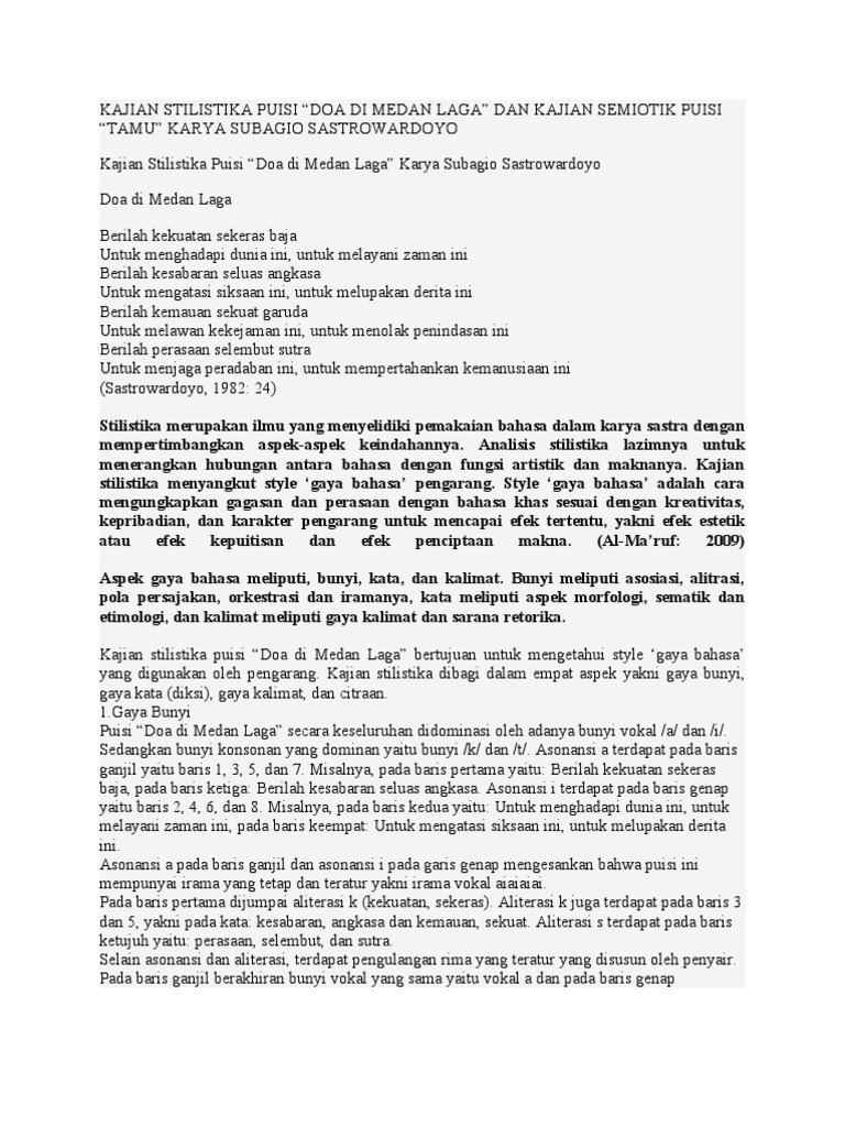 Sebagai penyair Hasta Indriyana menuntun pembaca kepada satu kenyataan bahwa penguasaan bahasa penting. ESTETIKA DAN FUNGSIONALITAS BAHASA Kajian Stilistika dan Semantik Bahasa Renda Yuriananta PENDAHULUANStilistika merupakan sebuah bidang studi yang mengkaji gaya bahasa di dalam teksTeks dianggap sebagai sebuah fenomena bahasa yang disampaikan oleh manusia dengan gaya tertentu sehingga membuat. Nov 14 2019 Proses penciptaan karya puisi dengan mengenal puisi dan pembentuknya serta keyakinan akan bahasa sebagai media menyampaikan perasaan gagasan dan ekspresi kejiwaan.